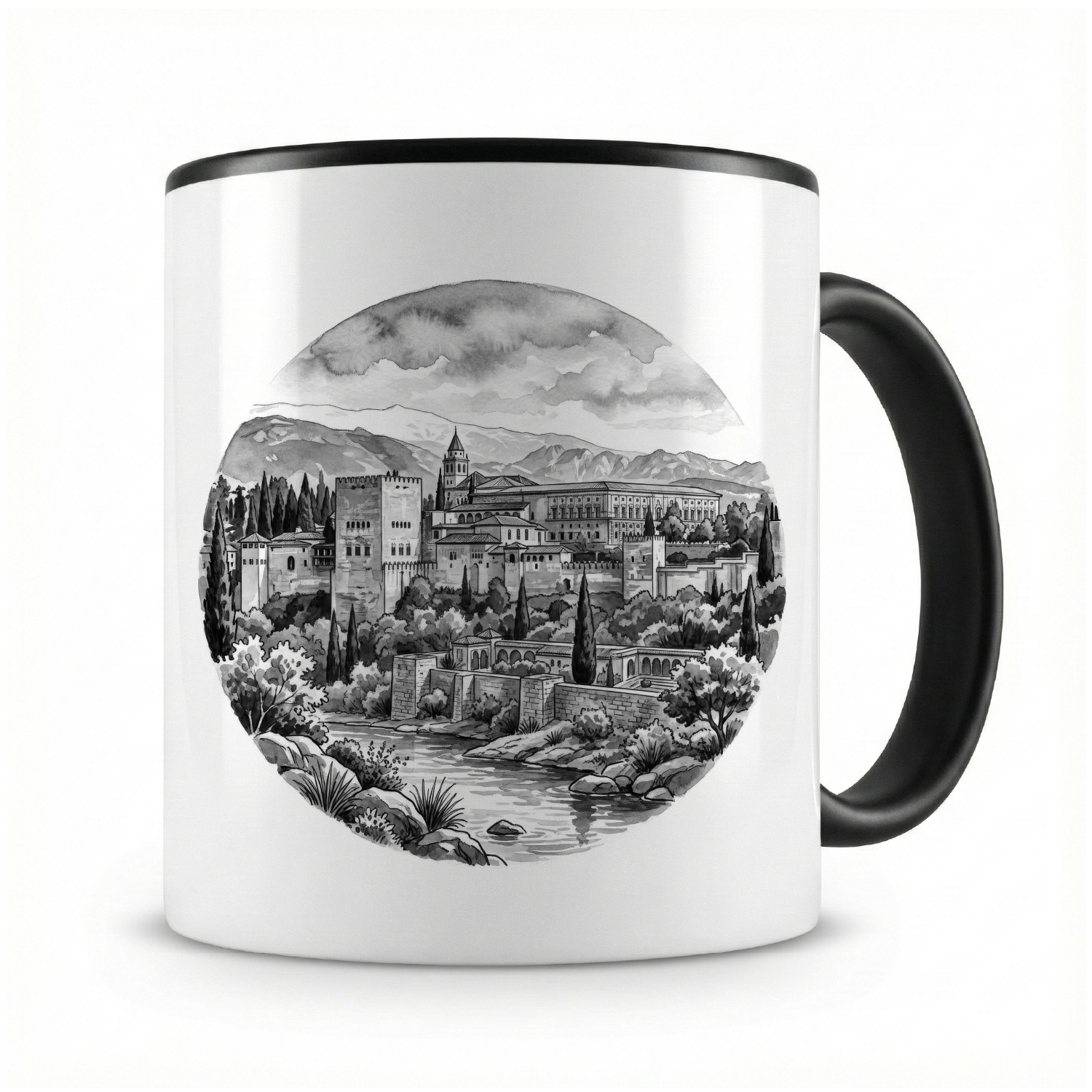 Stell dir vor, du startest deinen Tag mit einer großen, warmen Tasse Kaffee oder Tee – und jedes Mal, wenn du sie in die Hand nimmst, zaubert dir das liebevolle „Alhambra aus Spanien Granada“-Motiv ein Lächeln ins Gesicht. Genau das macht die Kaffeetasse von Samunshi so besonders.