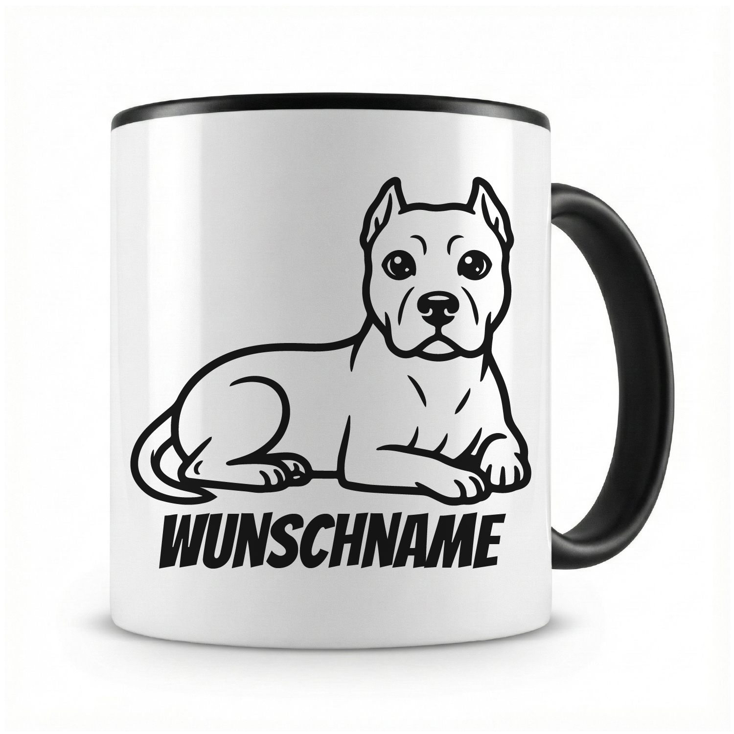 Tasse mit "American Pit Bull Terrier mit Name" als Motiv