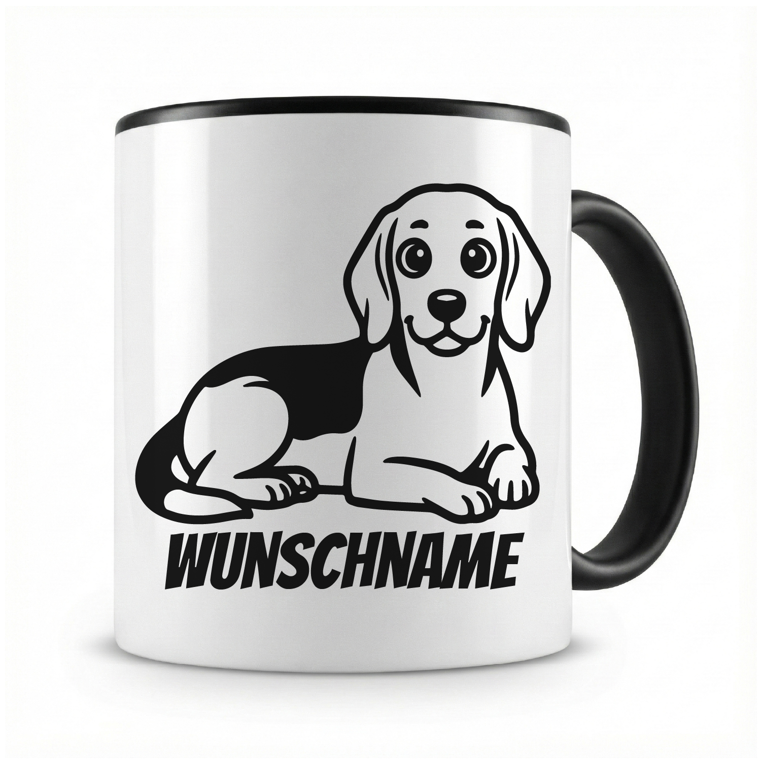 Eine Tasse bedruckt mit Beagle mit Name