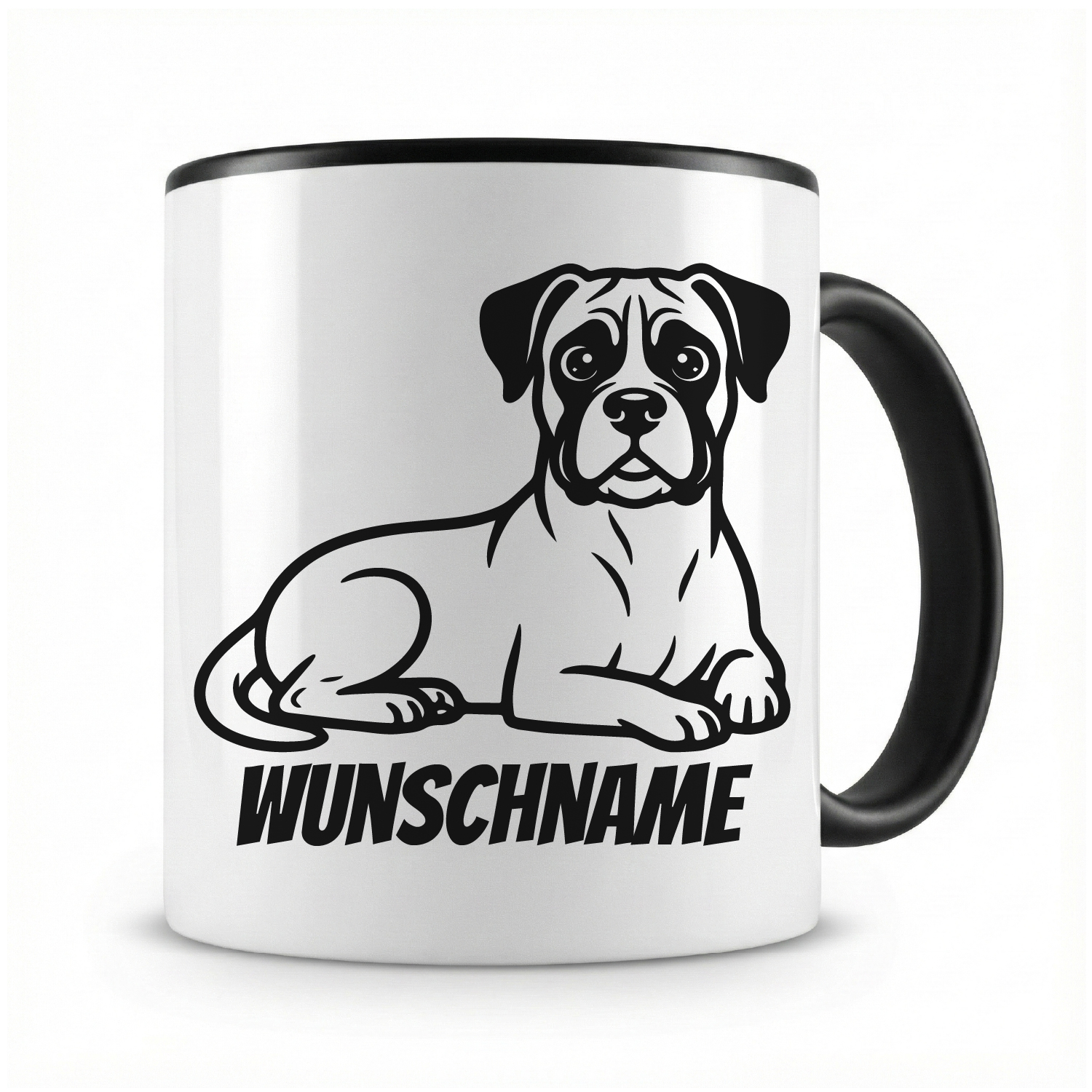 Tasse mit "Boxer mit Name" als Motiv