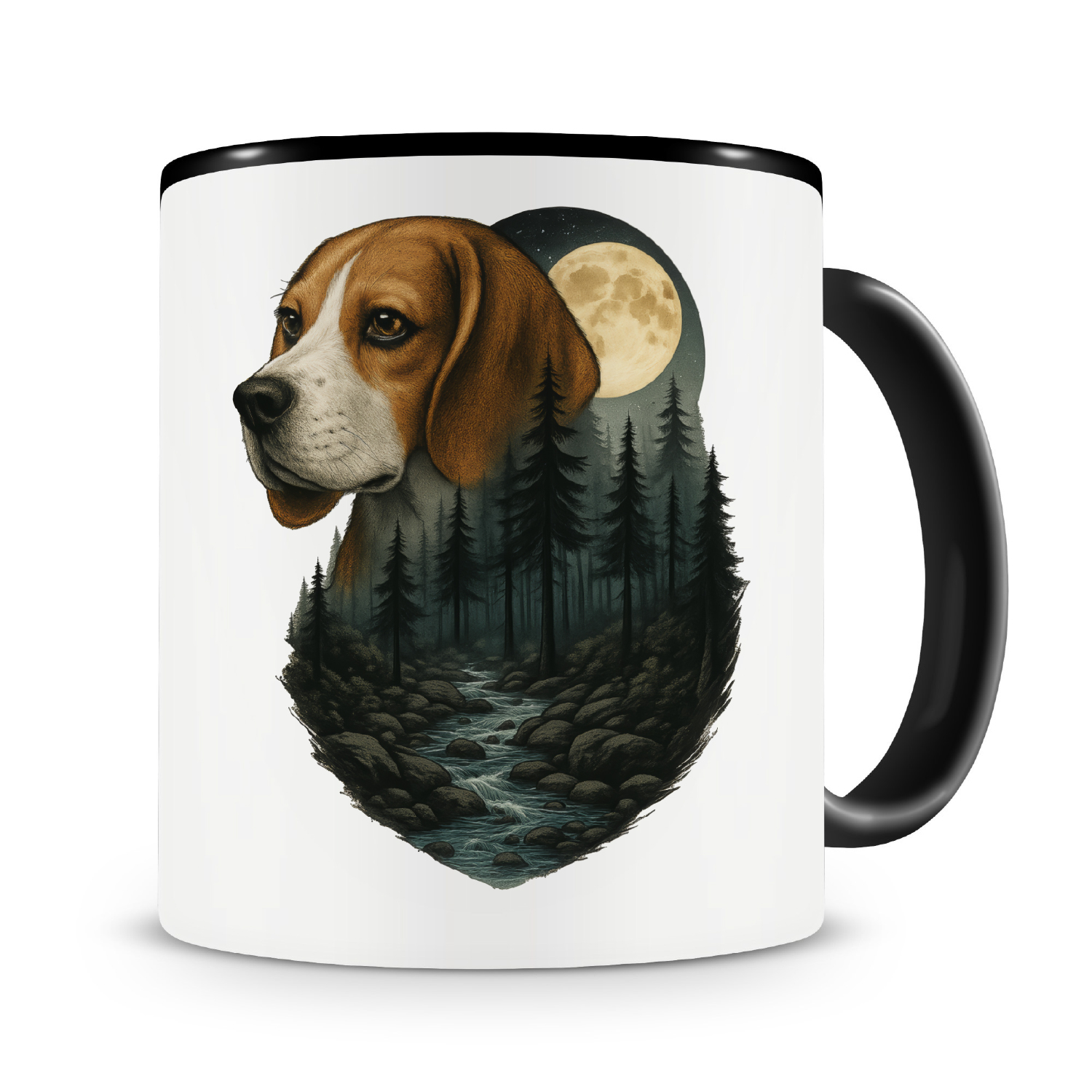 Eine Tasse bedruckt mit dem Motiv Beagle im Mondlicht