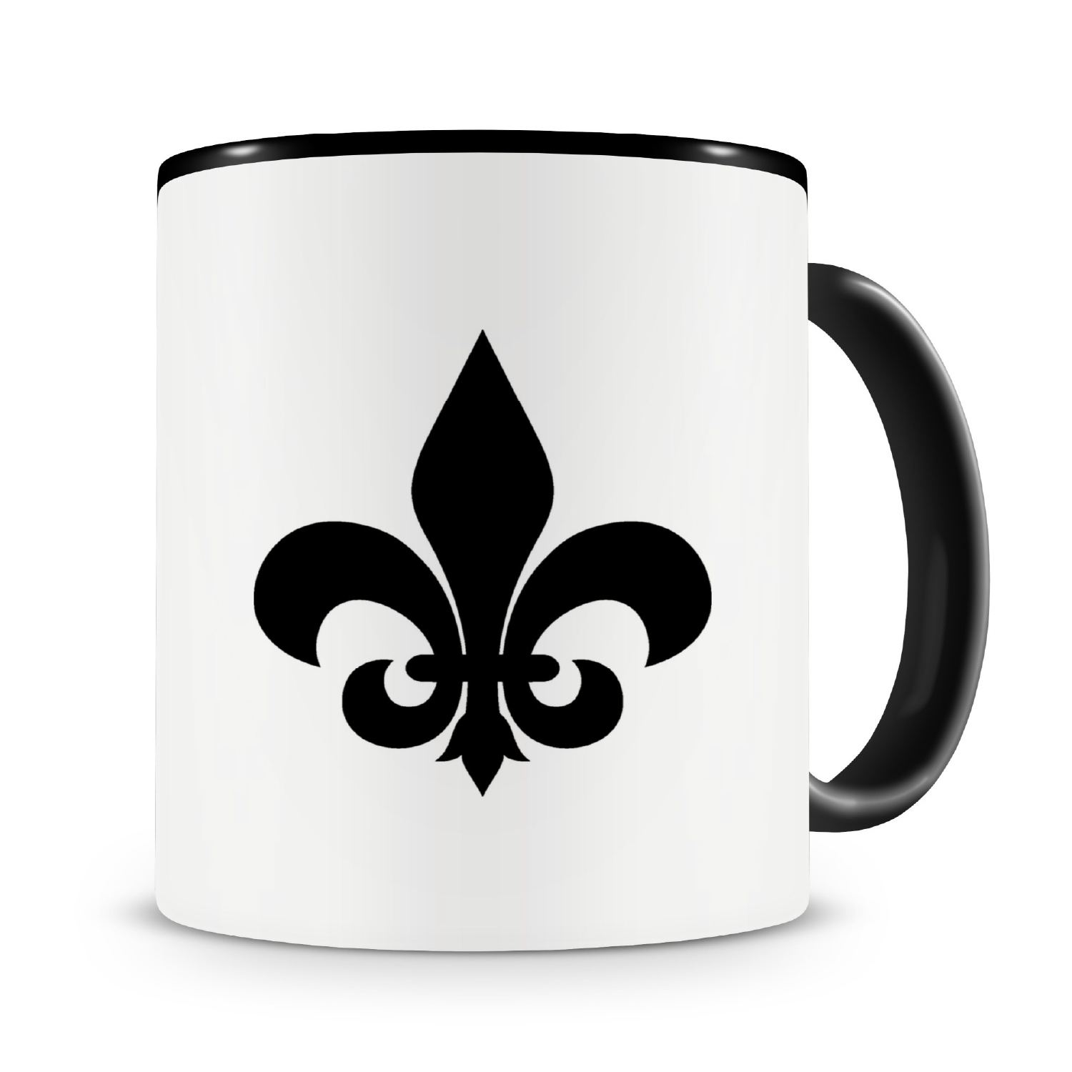 Eine Tasse bedruckt mit dem Motiv Fleur de Lis