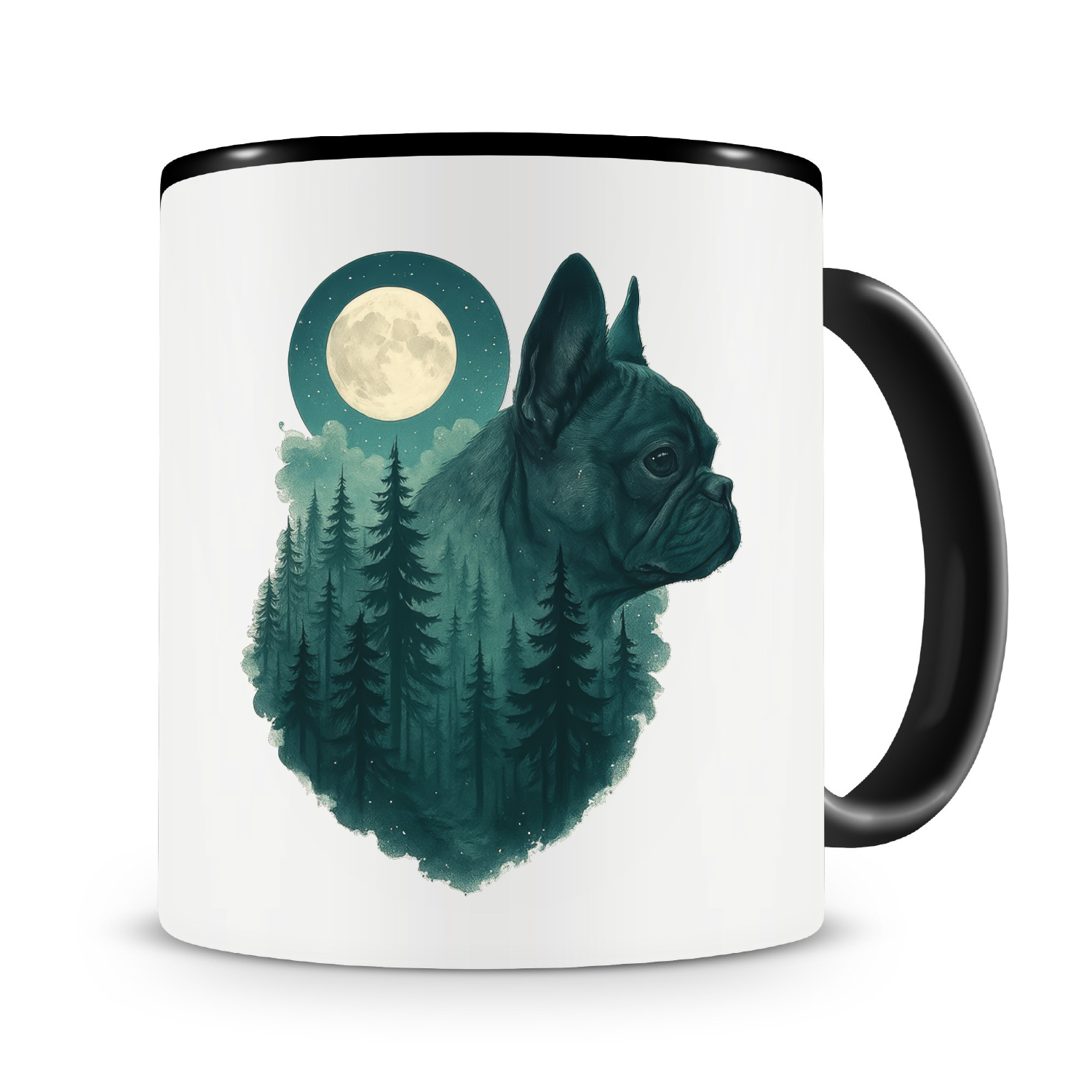Eine Tasse bedruckt mit dem Motiv Französische Bulldogge im Mondwald