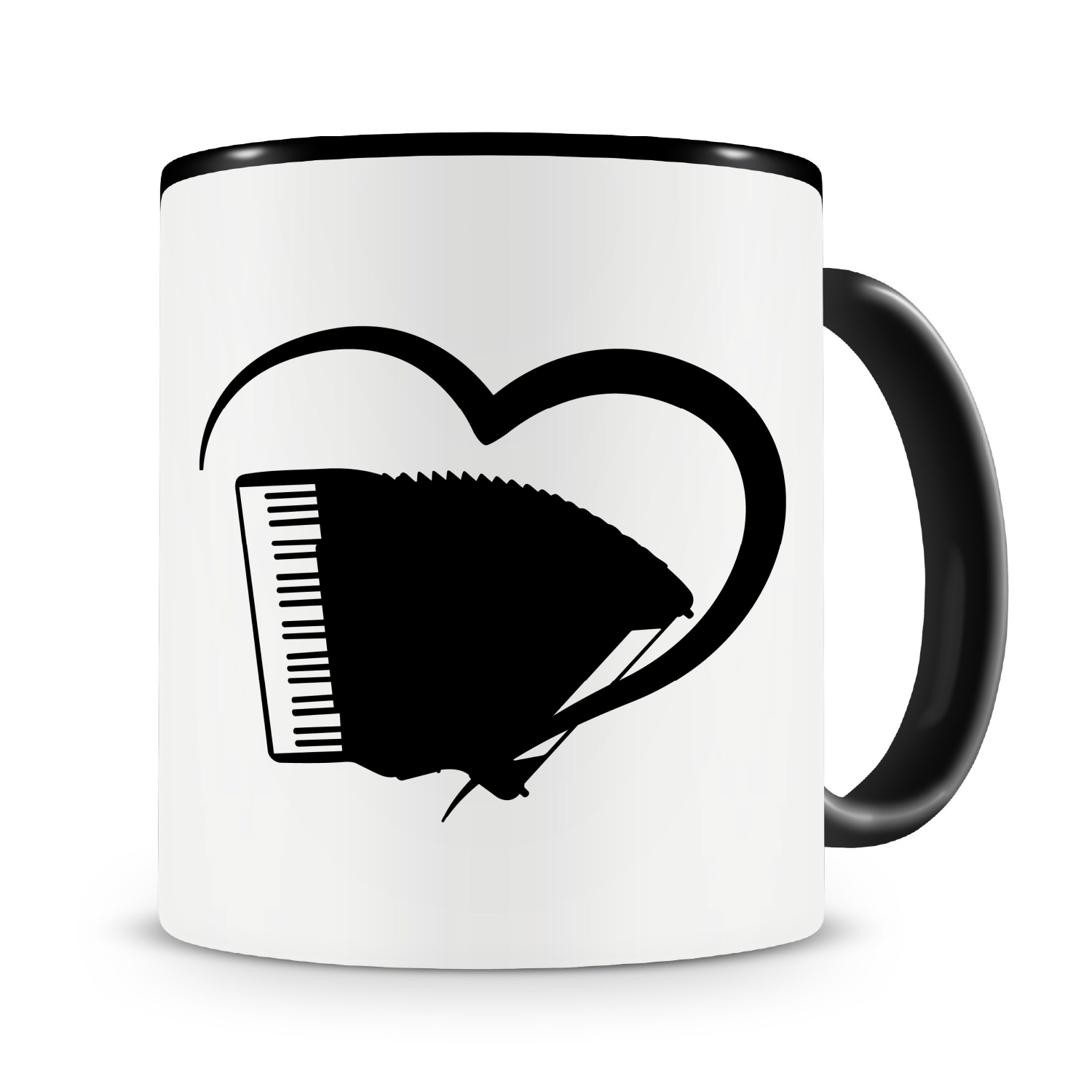 Eine Tasse bedruckt mit dem Motiv Herz mit Akkordeon