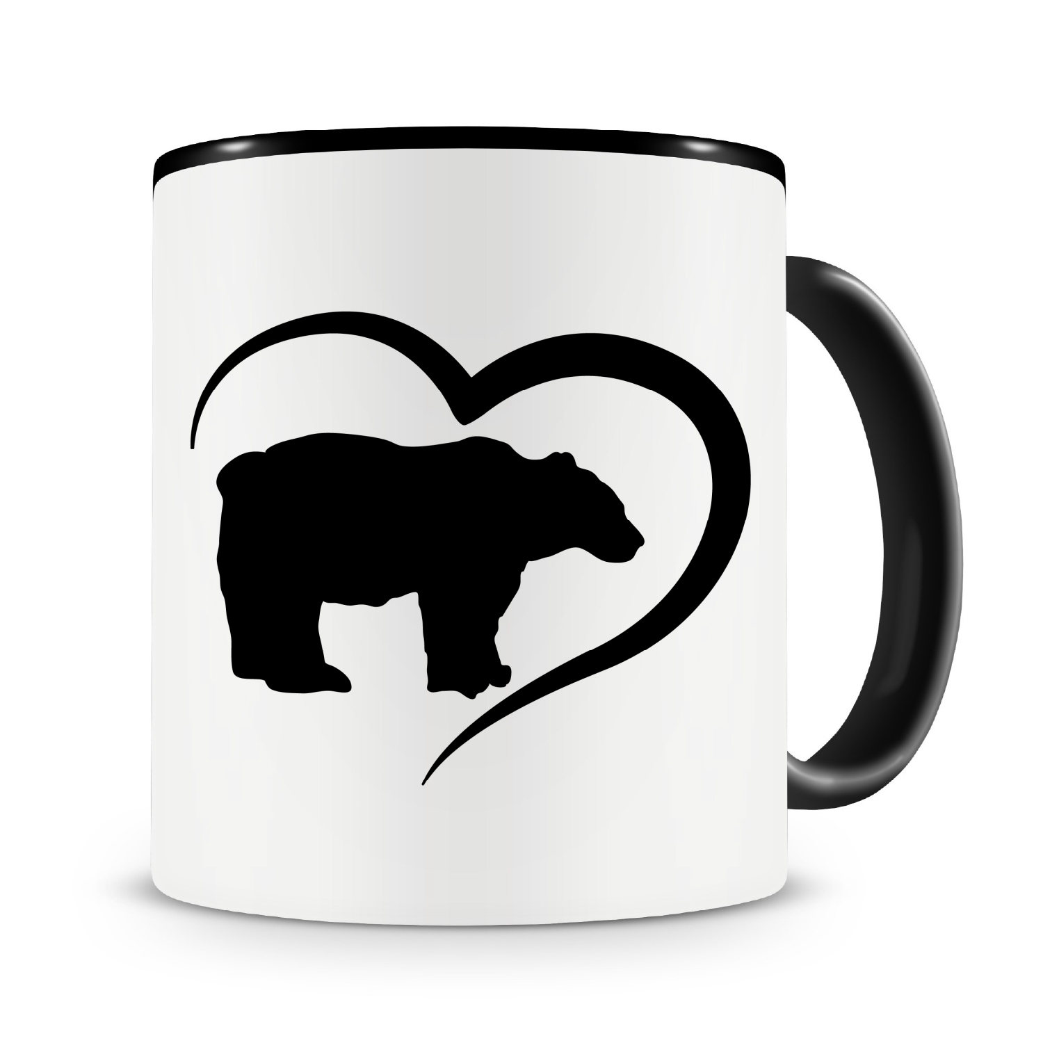 Eine Tasse bedruckt mit dem Motiv Herz mit Bär