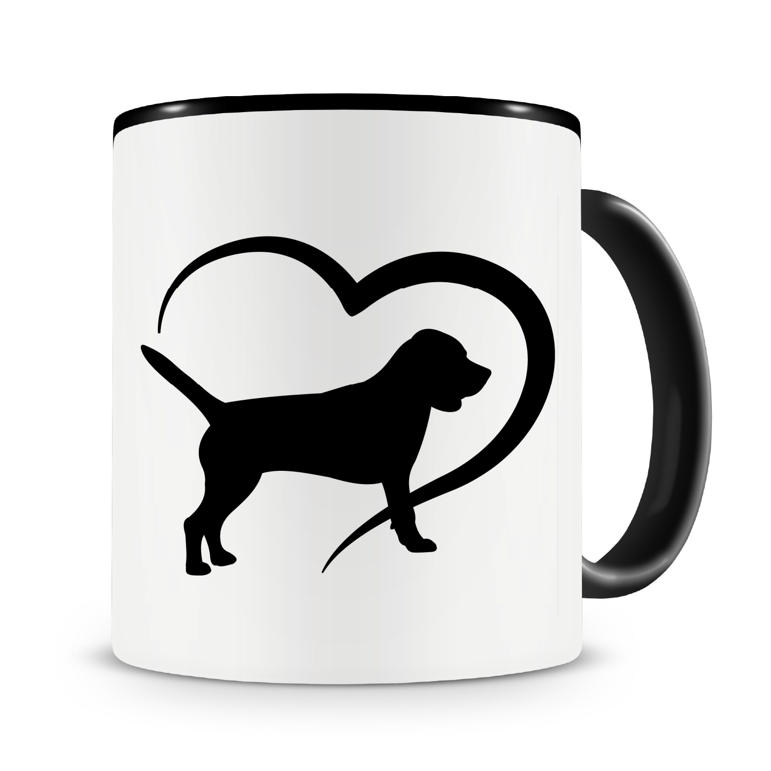 Eine Tasse bedruckt mit dem Motiv Herz mit Beagle