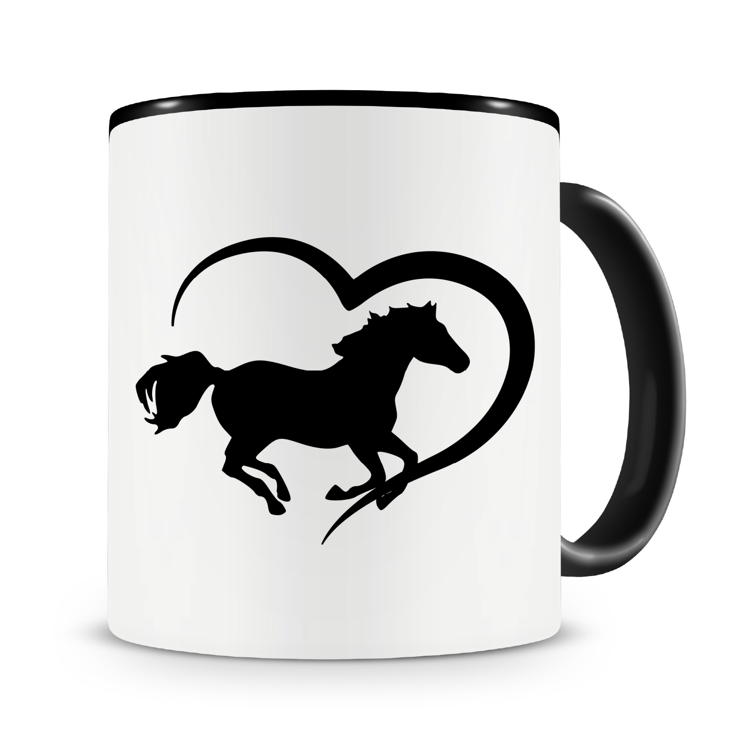 Eine Tasse bedruckt mit dem Motiv Herz mit Pferd