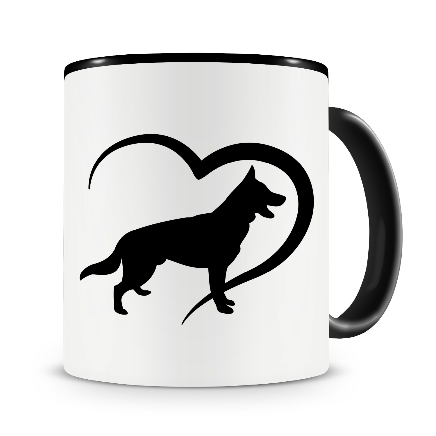 Eine Tasse bedruckt mit dem Motiv Herz mit Schäferhund