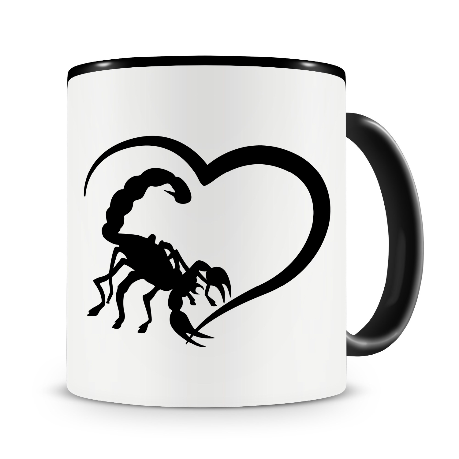 Eine Tasse bedruckt mit dem Motiv Herz mit Skorpion