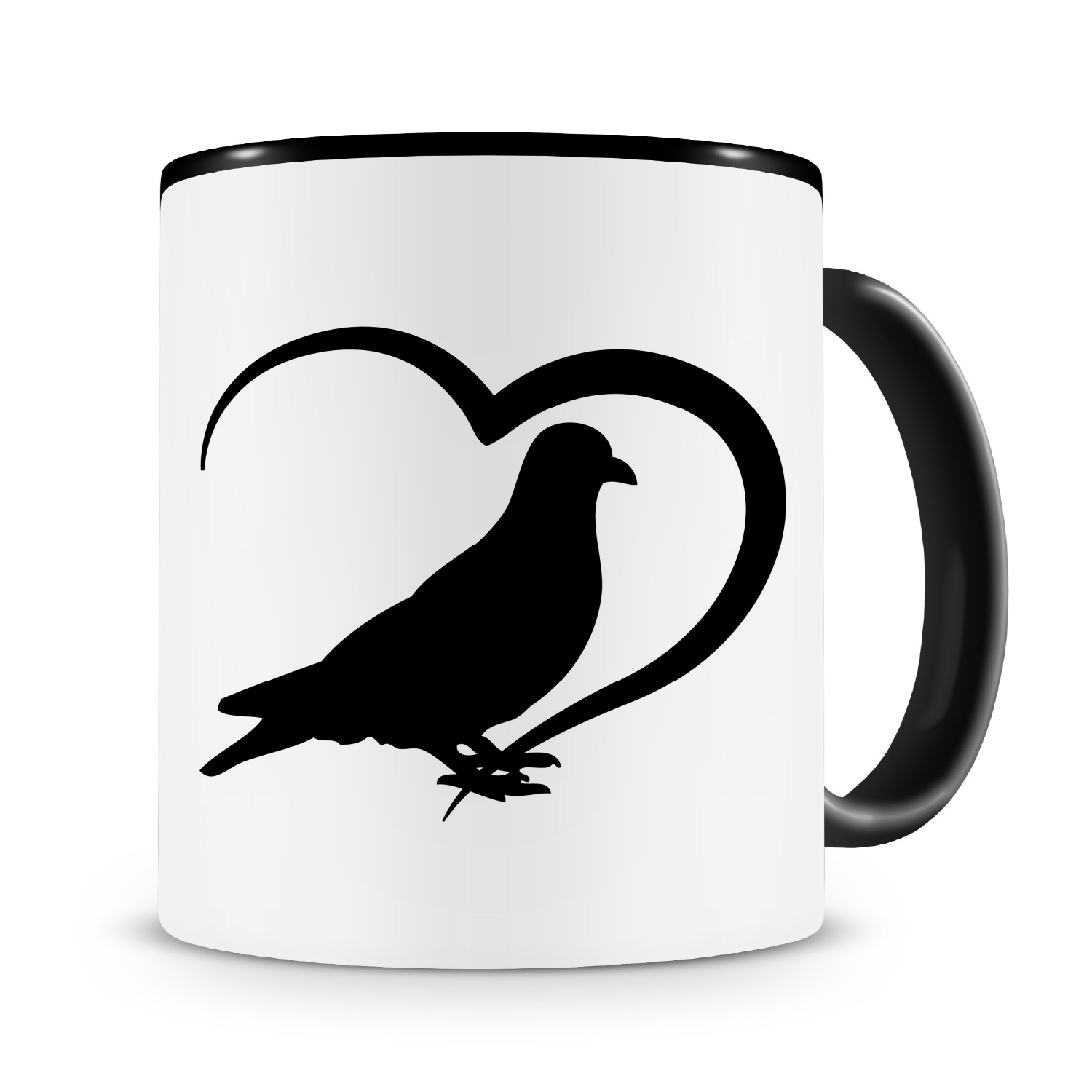 Eine Tasse bedruckt mit dem Motiv Herz mit Taube