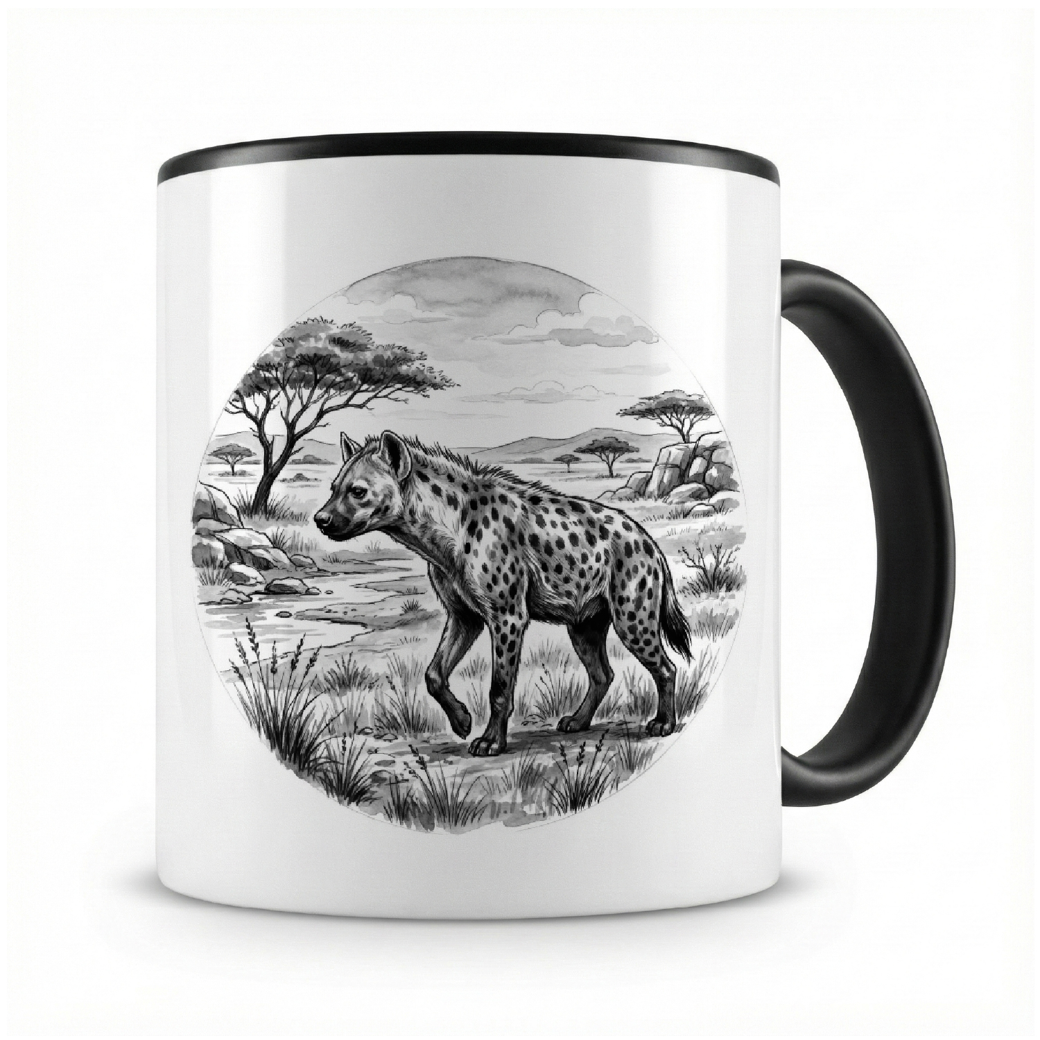 Eine Tasse bedruckt mit dem Motiv Hyäne in der Wildnis