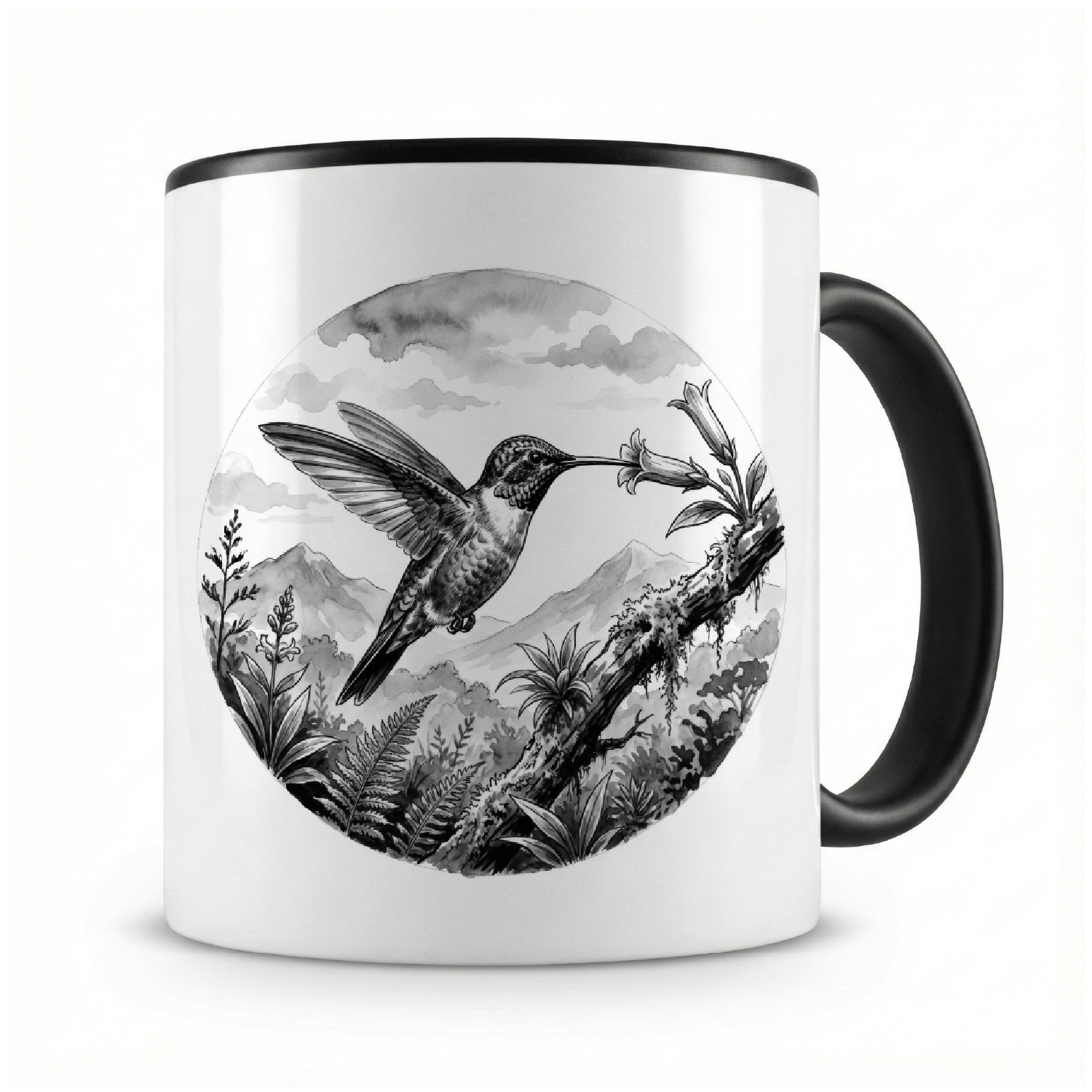 Eine Tasse bedruckt mit dem Motiv Kolibri in der Wildnis
