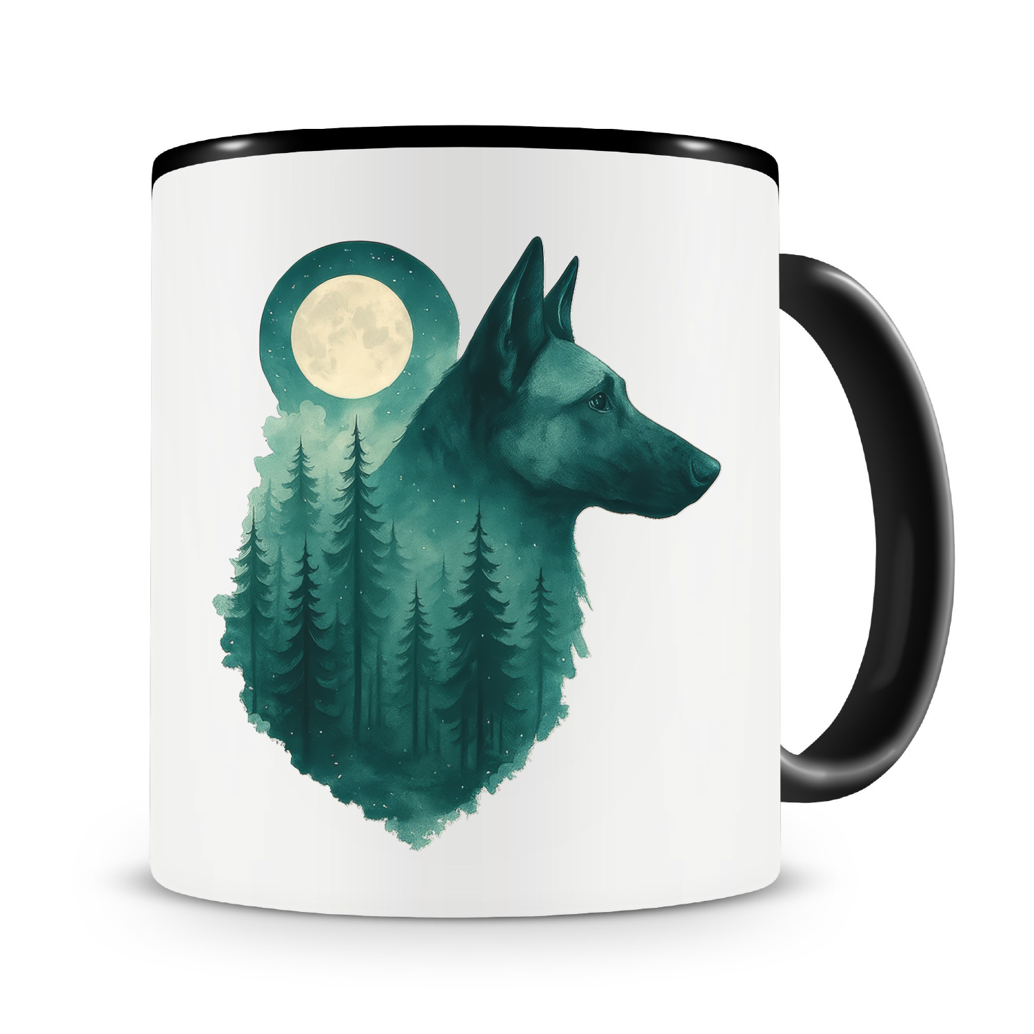Eine Tasse bedruckt mit dem Motiv Malinois im Mondwald