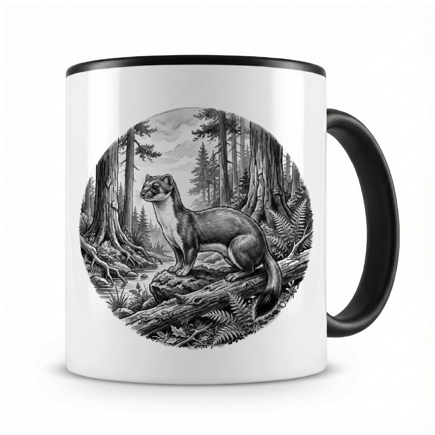 Eine Tasse bedruckt mit dem Motiv Marder in der Wildnis