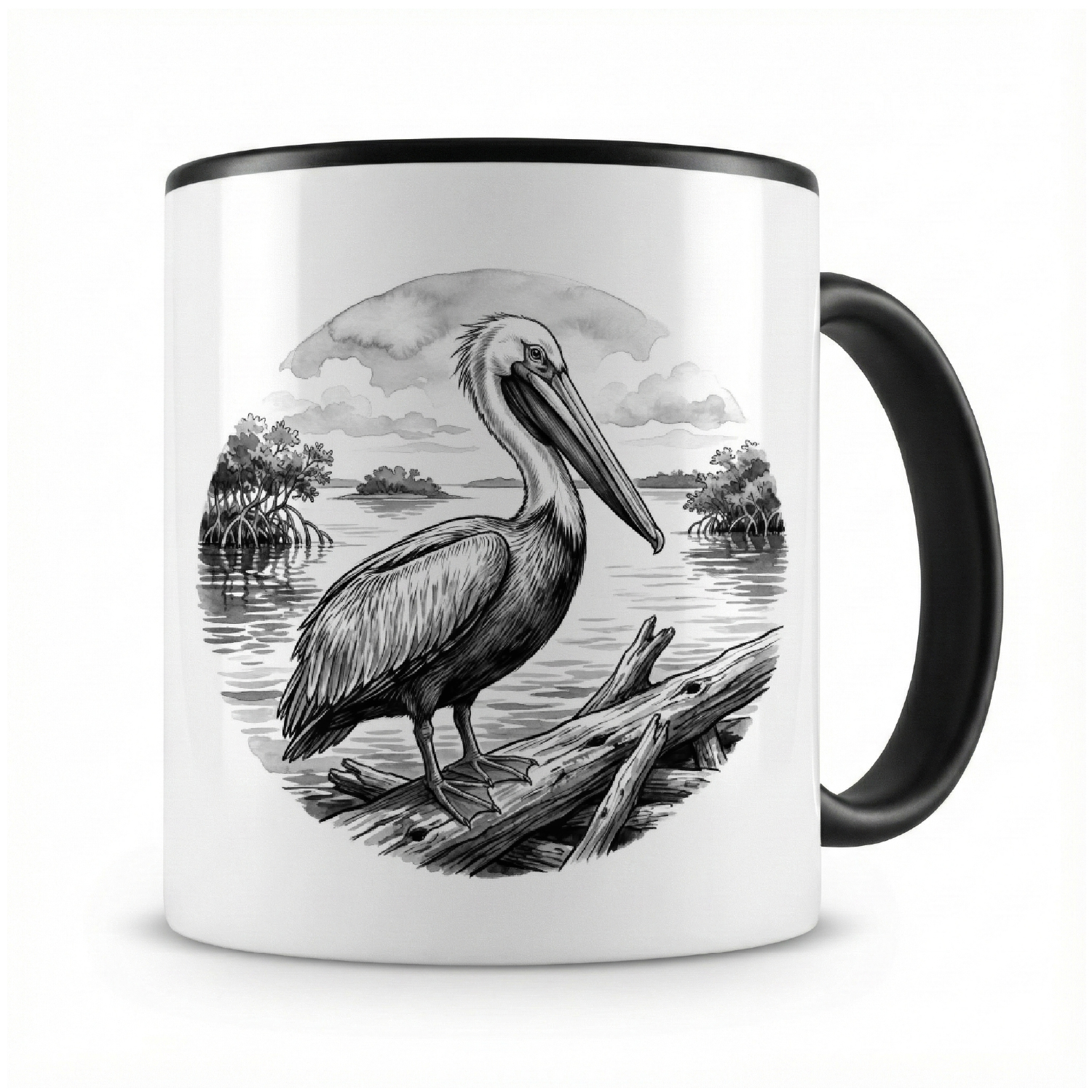 Eine Tasse bedruckt mit dem Motiv Pelikan in der Wildnis
