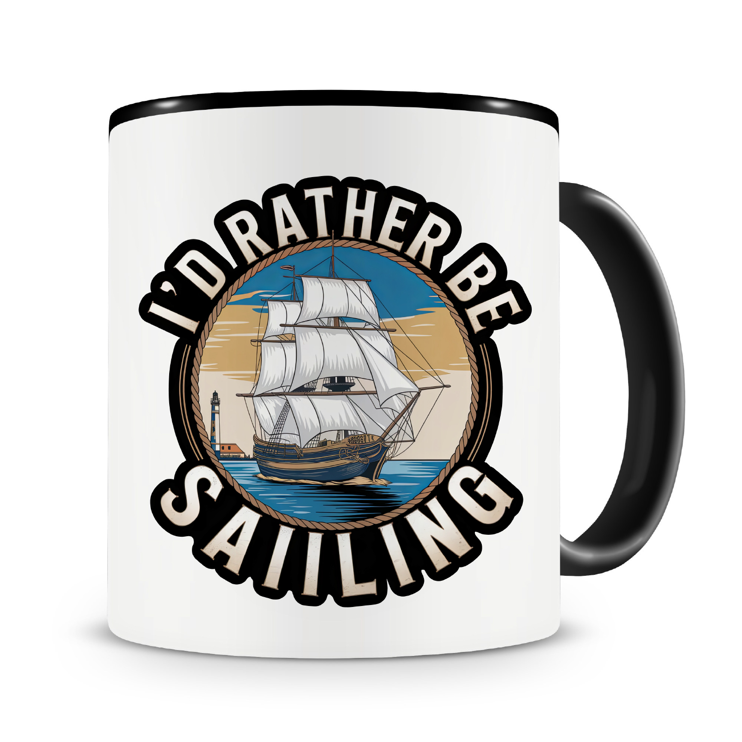 Eine Tasse bedruckt mit dem Motiv I'd Rather Be Sailing