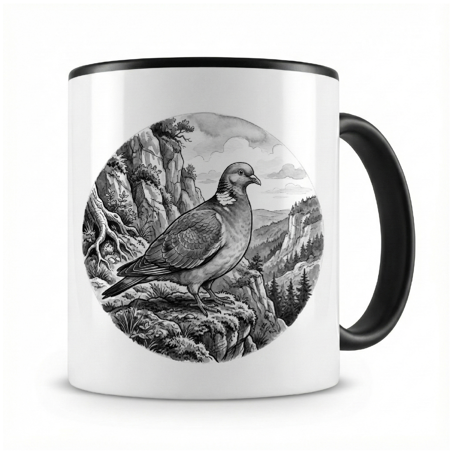 Eine Tasse bedruckt mit dem Motiv Taube in der Wildnis