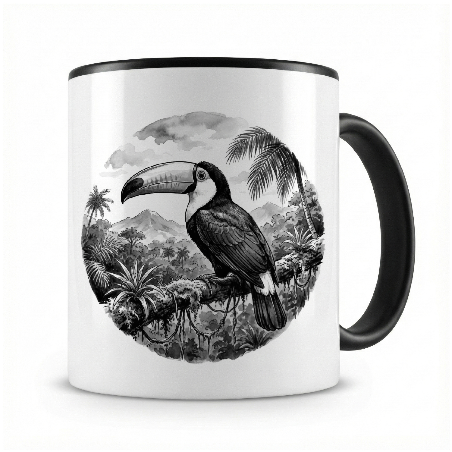 Eine Tasse bedruckt mit dem Motiv Tukan in der Wildnis