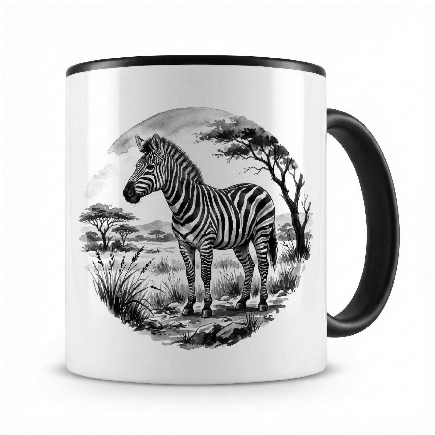 Eine Tasse bedruckt mit dem Motiv Zebra in der Wildnis