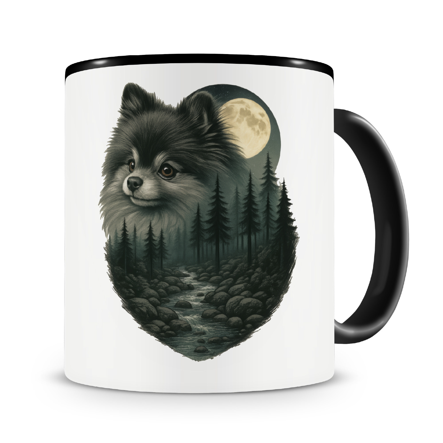 Eine Tasse bedruckt mit dem Motiv Zwergspitz im Mondlicht