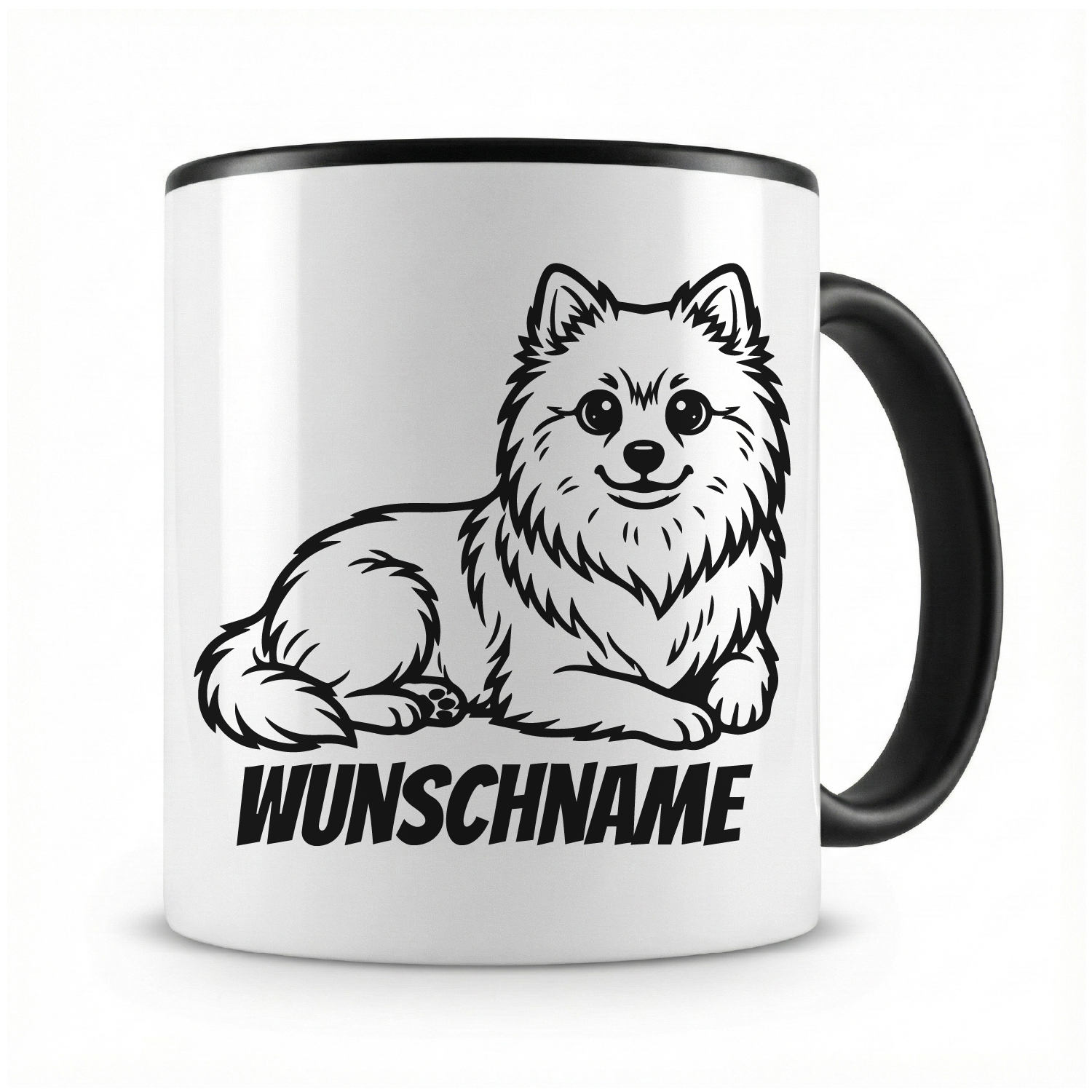 Tasse mit "Deutscher Spitz mit Name" als Motiv