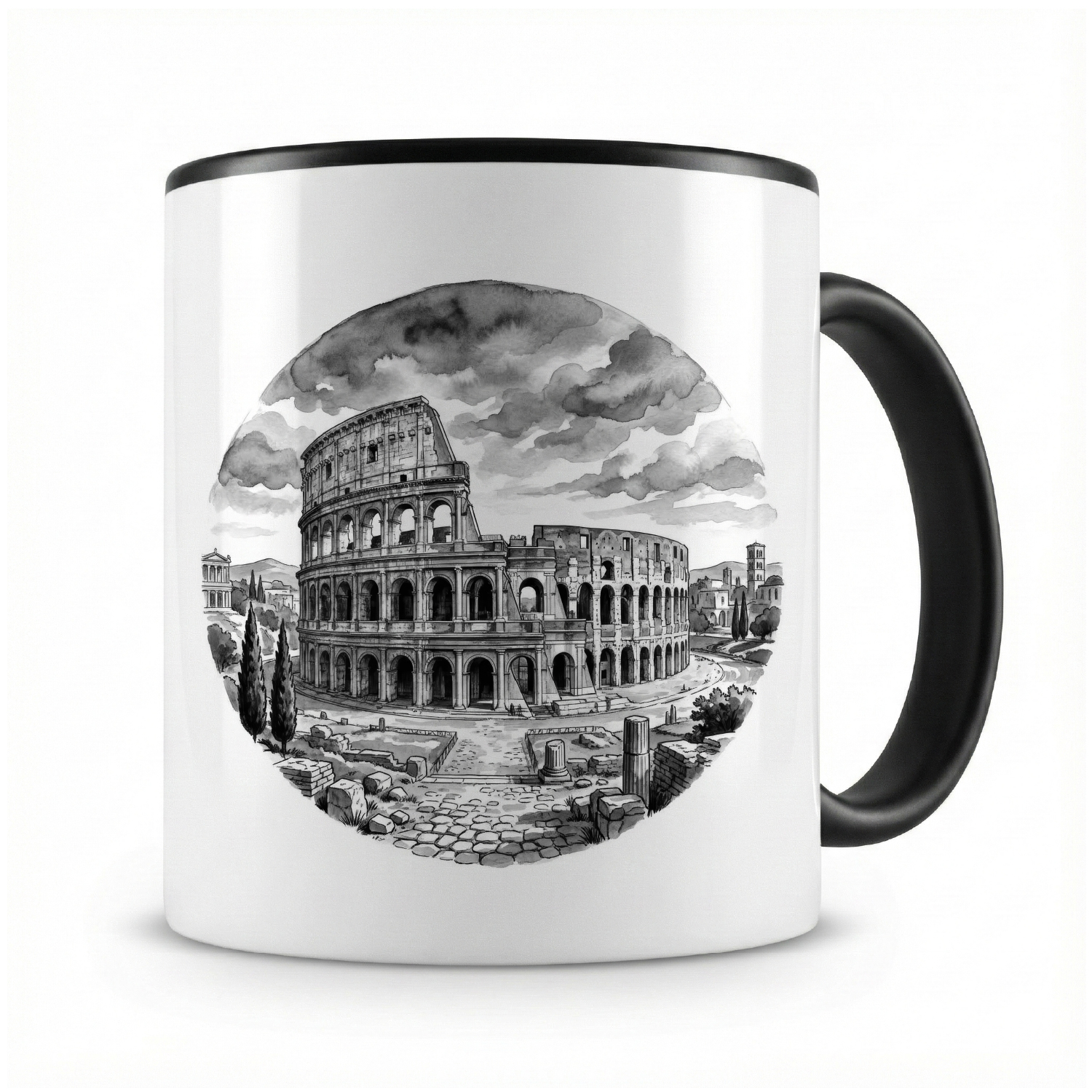 Stell dir vor, du startest deinen Tag mit einer großen, warmen Tasse Kaffee oder Tee – und jedes Mal, wenn du sie in die Hand nimmst, zaubert dir das liebevolle „Kolosseum aus Italien Rom“-Motiv ein Lächeln ins Gesicht. Genau das macht die Kaffeetasse von Samunshi so besonders.