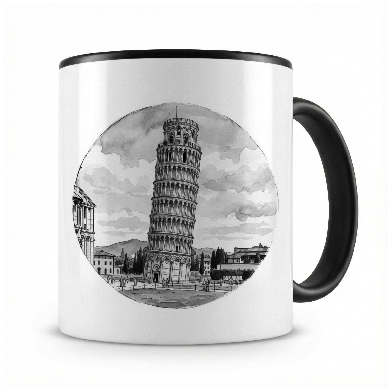 Eine Tasse bedruckt mit Schiefer Turm von Pisa aus Italien