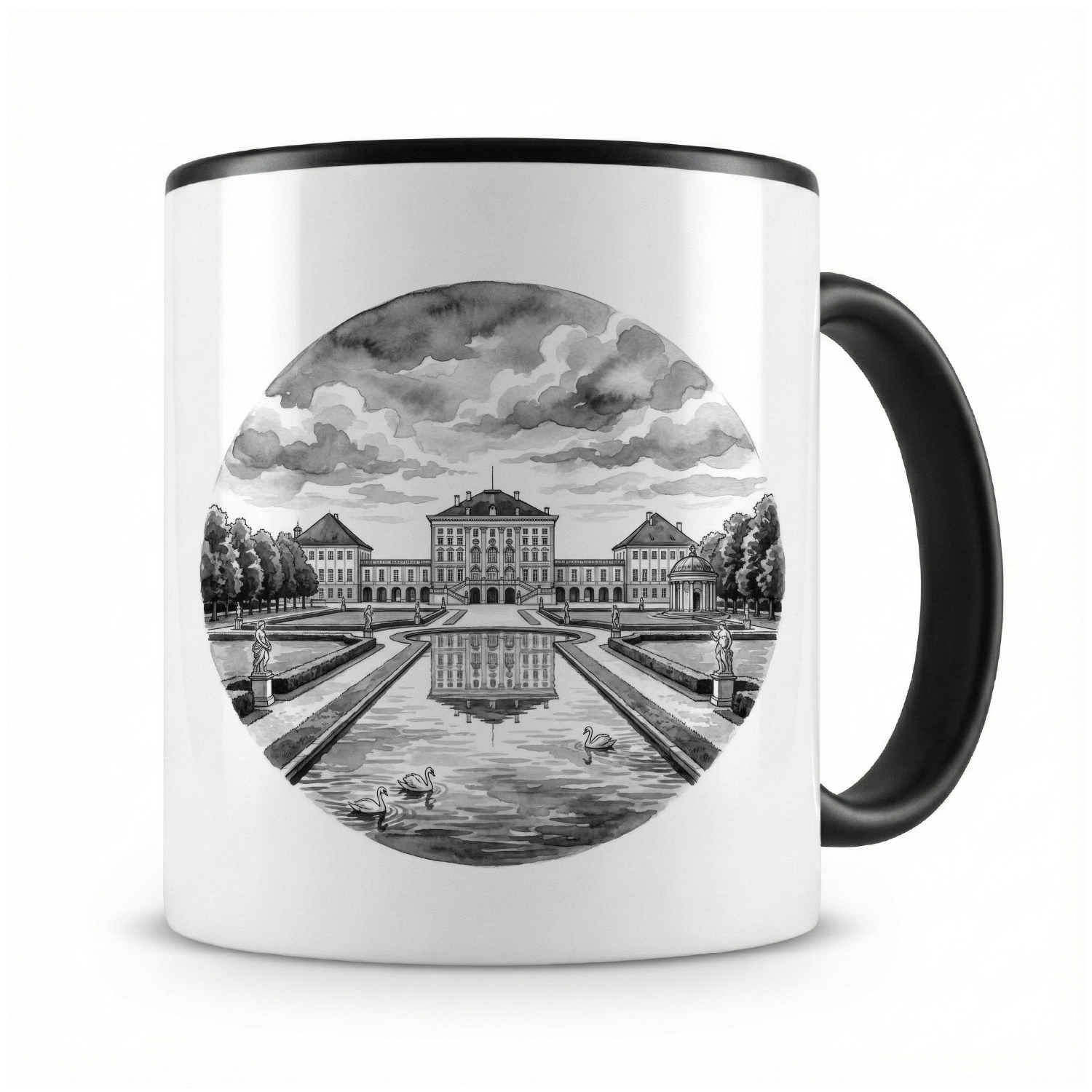 Stell dir vor, du startest deinen Tag mit einer großen, warmen Tasse Kaffee oder Tee – und jedes Mal, wenn du sie in die Hand nimmst, zaubert dir das liebevolle „Schloss Nymphenburg aus Deutschland München“-Motiv ein Lächeln ins Gesicht. Genau das macht die Kaffeetasse von Samunshi so besonders.