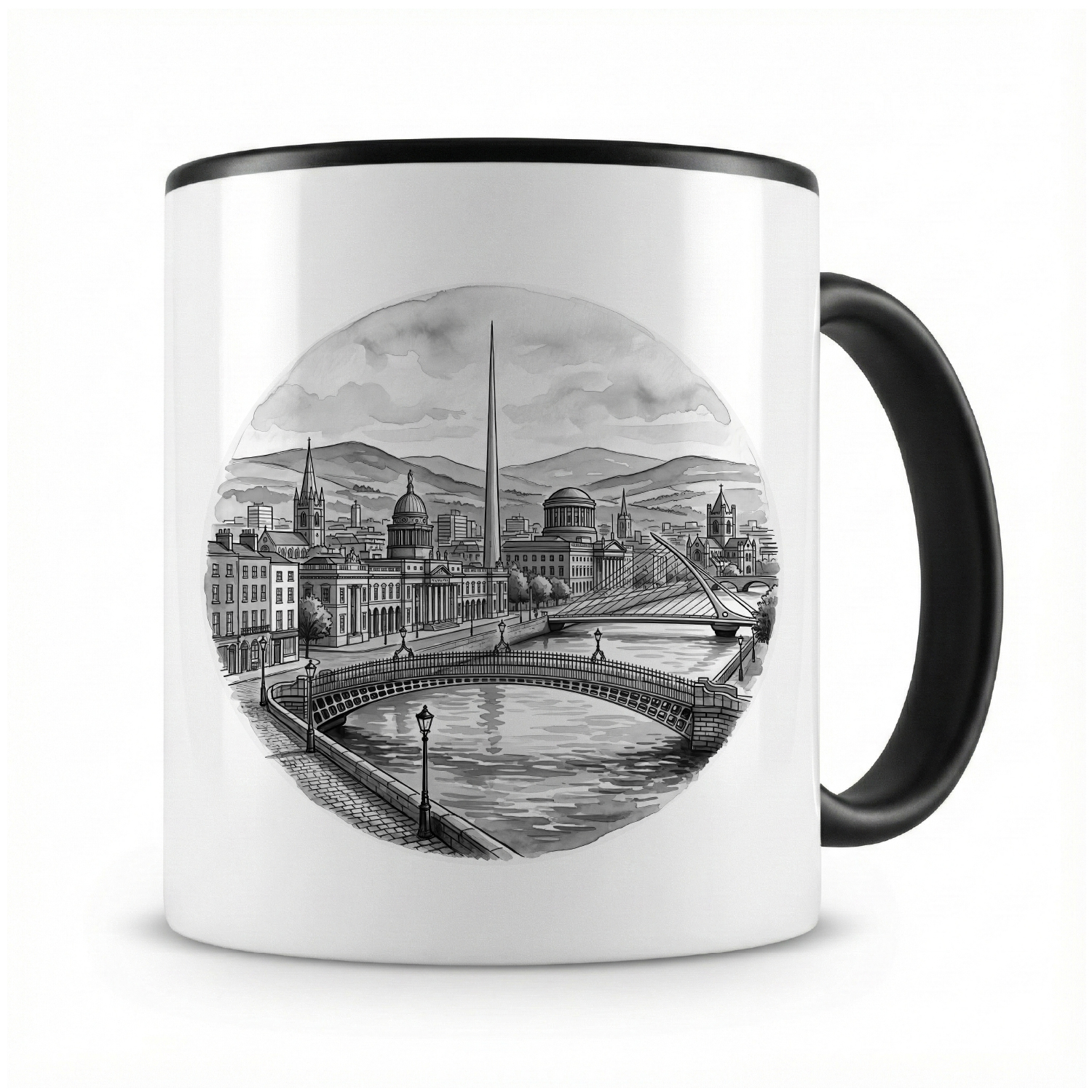 Stell dir vor, du startest deinen Tag mit einer großen, warmen Tasse Kaffee oder Tee – und jedes Mal, wenn du sie in die Hand nimmst, zaubert dir das liebevolle „Stilisierte Dublin Skyline“-Motiv ein Lächeln ins Gesicht. Genau das macht die Kaffeetasse von Samunshi so besonders.