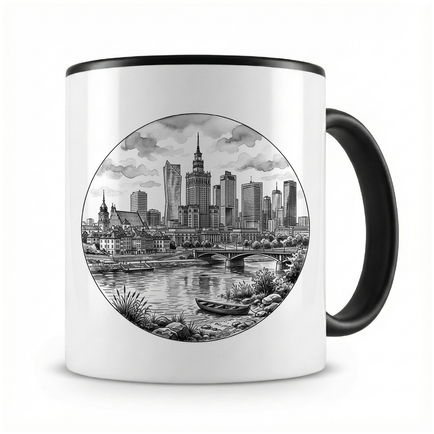 Stell dir vor, du startest deinen Tag mit einer großen, warmen Tasse Kaffee oder Tee – und jedes Mal, wenn du sie in die Hand nimmst, zaubert dir das liebevolle „Stilisierte Warschau Skyline“-Motiv ein Lächeln ins Gesicht. Genau das macht die Kaffeetasse von Samunshi so besonders.
