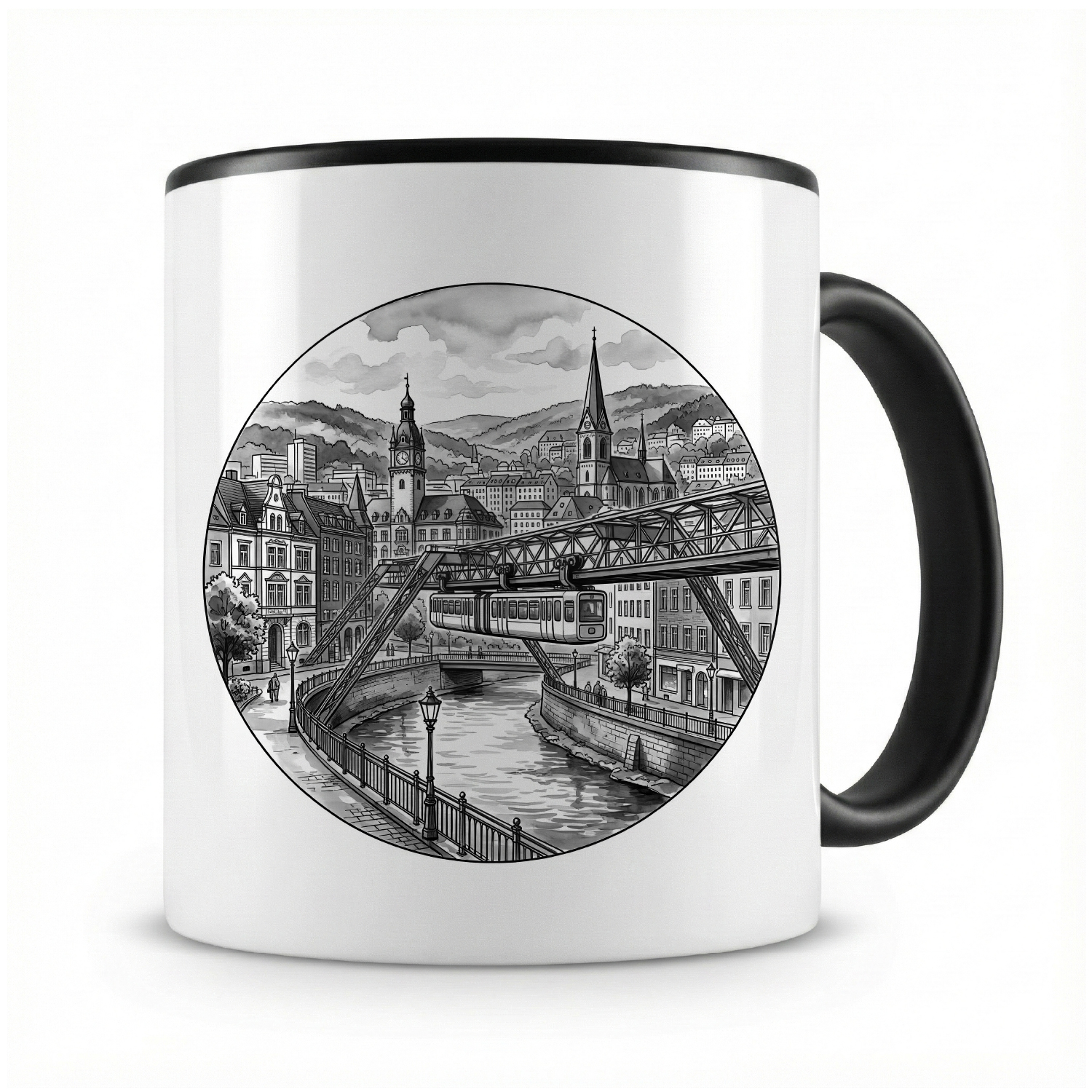 Stell dir vor, du startest deinen Tag mit einer großen, warmen Tasse Kaffee oder Tee – und jedes Mal, wenn du sie in die Hand nimmst, zaubert dir das liebevolle „Stilisierte Wuppertal Skyline“-Motiv ein Lächeln ins Gesicht. Genau das macht die Kaffeetasse von Samunshi so besonders.