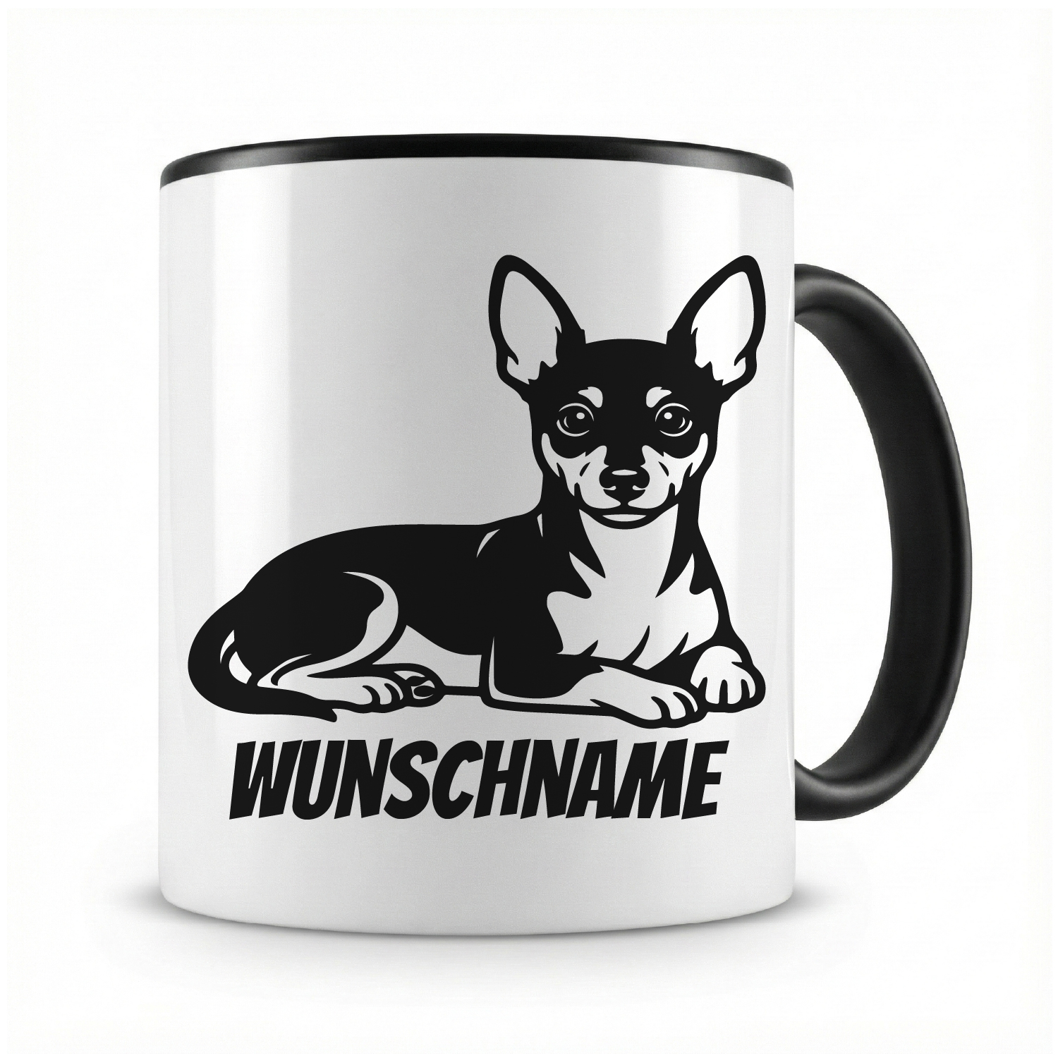 Tasse mit "Zwergpinscher mit Name" als Motiv