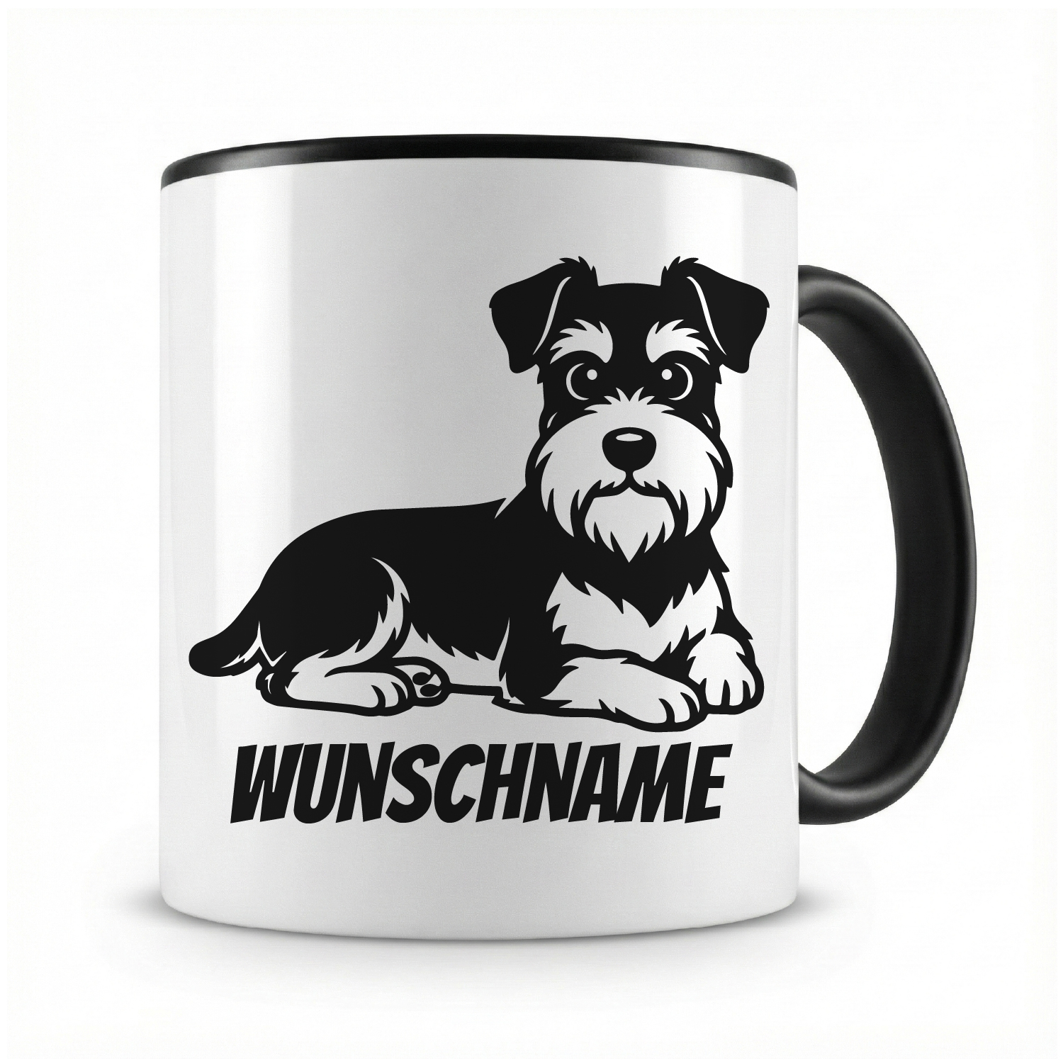 Tasse mit "Zwergschnauzer mit Name" als Motiv
